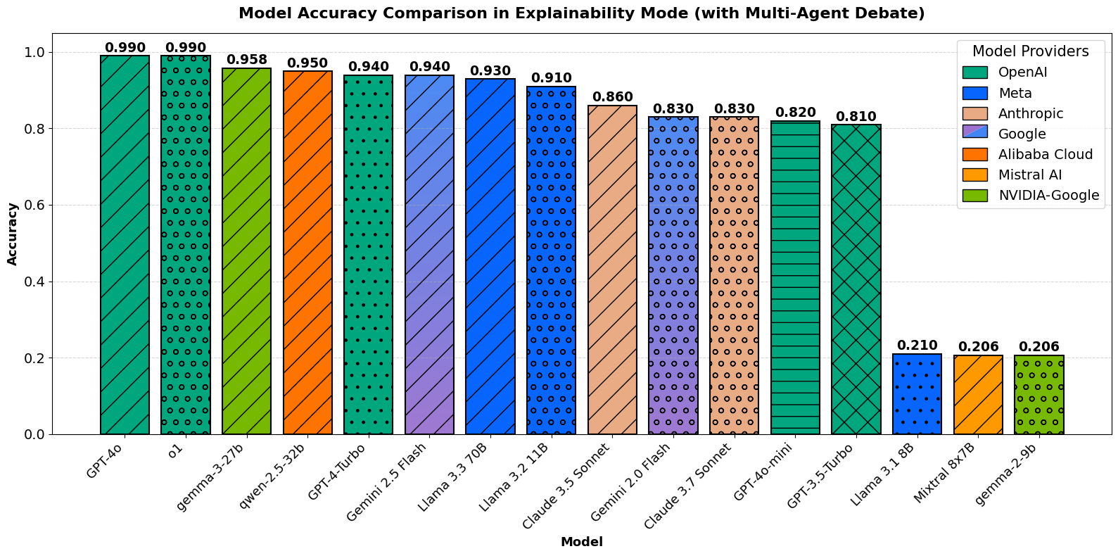 - Agent Collaboration: Employs multi-agent reasoning to debate and resolve conflicting assessments.